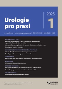 PŘEHLEDOVÉ ČLÁNKY Srovnání antimuskarinik a beta-3-mimetik ve farmakoterapii hyperaktivního močového měchýře Význam síťkových implantátů při rekonstrukcích pánevního dna u žen Onkologické aspekty urolitiázy SEXUÁLNÍ A REPRODUKČNÍ MEDICÍNA PRO PRAXI Vitamin D a jeho vliv na sexuální a reprodukční zdraví Poruchy ejakulace u urologických onemocnění DOBRÁ RADA Role červené řepy před indikací opakovaných rebiopsií prostaty VE ZKRATCE Diferenciální diagnostika hematurie Z POMEZÍ UROLOGIE Role genetických testů při rozhodování o léčbě nádorů ledvin Metabolický syndrom a onemocnění močového traktu SDĚLENÍ Z PRAXE Nešťastný experiment s montážní pěnou www.solen.cz | www.urologiepropraxi.cz | ISSN 1213-1768 | Ročník 26 | 2025 Urologie pro praxi 20251 Časopis je vydáván ve spolupráci se Sdružením ambulantních urologů a Českou společností pro sexuální medicínu