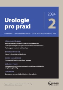 www.urologiepropraxi.cz / Urol. praxi. 2024;25(2):68-71 / UROLOGIE PRO PRAXI 69 PŘEHLEDOVÉ ČLÁNKY Urologické komplikace u pacientů s roztroušenou sklerózou Porucha močení může být u 9% pacientů prvním příznakem tohoto neurologického onemocnění a u 2% pacientů mohou být močové dysfunkce jediným symptomem RS (7). Typ neurogenní dysfunkce závisí na lokalizaci plaků demyelinizace v CNS. V časném stadiu RS dominují nejčastěji symptomy jako urgence, urgentní inkontinence a frekvence v důsledku hyperaktivity detruzoru (detrusor overactivity, DO). Prevalence tohoto typu dysfunkce je v literárních zdrojích uváděna v rozmezí 37–99 %. Obstrukční mikční symptomatologie se z důvodů detruzorosfinkterické dyssynergie (DSD) vyskytuje u 34–79 % pacientů a v 25 % případů se můžeme setkat s chronickou močovou retencí (8). Účelem terapie neurogenních dysfunkcí je ochrana horních močových cest (HMC), dosažení kontinence, zajištění dostatečné evakuace dolních močových cest (DMC) a zlepšení kvality života pacientů (9). Neurogenní dysfunkce dolních močových cest Jímací symptomy na podkladě hyperaktivity detruzoru Ty lze ovlivnit režimovými opatřeními. Základem je úprava pitného režimu. Adekvátní příjem tekutin kolem 1 500–2 500 ml/den. Nižší příjem tekutin může způsobit močové infekce (IMC), litiázu nebo obstipaci. Vyšší příjem vyvolá zhoršení symptomů onemocnění (například polyurii). Rehabilitace svalů pánevního dna může zlepšit symptomy DMC, potlačit DO a zlepšit jak urgentní, tak stresovou inkontinenci. Např. soustava cviků pro rehabilitaci pánevních svalů, tzv. Kegelovy cviky, je známa již více než 50 let. Posilují schopnost svalů se stahovat, zvyšují tlak, který uzavírá močovou trubici. Zlepšuje se koordinace svalů v blízkosti močové trubice při kašli, kýchání apod. Doporučuje se cvičit 3× denně po dobu 20 minut (10). Ideálně s pomocí a instruktáží erudovaným fyzioterapeutem. Při selhání režimových opatření lze přistoupit k farmakoterapii. Jejím základem jsou anticholinergika. Blokádou specifických muskarinových receptorů působí inhibici funkce detruzoru, tlumí vnímání náplně močového měchýře a zlepšují jímací příznaky, ale neovlivňují normální mikční fázi. Léčba těmito preparáty je efektivní a bezpečná. Nepříjemné nežádoucí účinky jako sucho v ústech, zácpa, rozmazané vidění apod. mohou snížit adherenci k léčbě. Je proto vhodné na ně pacienta předem upozornit (11). Léčebný efekt se pohybuje mezi 60–80 % (10). Výběr konkrétního léku by měl být individuální. Pro maximální účinek je nutná titrace dávky. U některých pacientů se ukázalo jako účelné nepravidelné podávání dle potřeby („on demand“) (10). V případě polypragmazie je nejvhodnější podávat preparáty, které nejsou metabolizovány přes cytochrom P 450 a mají tudíž nejmenší riziko lékových interakcí, například trospium nebo fesoterodin. Oxybutinin prostupuje hematoencefalickou bariérou, a má proto největší vliv na CNS (závratě, somnolence, poruchy paměti). Je nutné respektovat známé kontraindikace podání a také preskripční omezení SÚKL (Státní ústav pro kontrolu léčiv). Pro zvýšené riziko močové retence jsou nutné pravidelné kontroly postmikčního rezidua (post-void residual, PVR). U pacientů, kteří anticholinergika nemohou užívat nebo není jejich účinek dostatečný, můžeme podat β-3-mimetika. Ta působí navázáním na beta receptory v detruzoru, což vede k relaxaci hladkých svalů močového měchýře, a tím zvyšují kapacitu měchýře. Mají minimální účinek na mikční fázi, proto nijak neovlivňují PVR (10). Vzhledem k menšímu množství nežádoucích účinků (hypertenze 9–11 %, bolesti hlavy 4 %) je prokázána vyšší adherence a perzistence k léčbě. Při selhání farmakoterapie lze pacientům s DO nabídnout injekční podání onabotulotoxinu A (BTX-A) do detruzoru. Botulotoxin je neurotoxin produkovaný anaerobním rodem Clostridium. Mechanismus jeho účinku je v presynaptické blokádě uvolňování acetylcholinu. Následně dochází k inhibici kontrakcí příčně pruhovaných svalů nebo hladké svaloviny. Výsledkem je reverzibilní paralýza těchto svalů (12). Standardní dávkou je 200 IU aplikovaných do 20 míst detruzoru mimo trigonum močového měchýře. Efekt léčby trvá 6–9 měsíců. Léčbu lze opakovat bez poklesu efektivity. Pacient musí být upozorněn na zvýšení rizika nárůstu PVR s přechodnou nutností intermitentní katetrizace. Nyní se proto testují nové formy aplikace, například lipozomy – fosfolipidové bublinky naplněné vodou, které dopraví BTX-A přímo přes buněčnou membránu do urotelu, kdy se předpokládá výrazné snížení rizika zvýšení PVR (13). Sakrální neuromodulace je bezpečná a efektivní terapie u neurogenního močového měchýře. Jedná se o léčbu s minimem nežádoucích účinků. Jednou z metod je např. Stollerova aferentní neurostimulace nervus tibialis (PTNS). Aktivací aferentních nervových vláken dochází k přímému tlumivému vlivu na sakrální mikční centrum v oblasti S2–S4, to způsobí inhibici aktivity detruzoru. Zároveň aktivace eferentních vláken reflexně zvýší aktivitu příčně pruhovaného svalu sfinkteru. Pacienti indikovaní k neurostimulaci přicházejí 1× až 2× týdně do ambulance, délka jedné aplikace je 30 minut, celková délka léčby zhruba 10 až 12 týdnů. Stimulace se provádí většinou 12× á 30 minut 1× za týden. Nástup účinku lze pozorovat za 6–8 týdnů (14). Efektivita metody dosahuje 54–59 % (15). Operační metody jsou u pacientů s RS používány zcela výjimečně. Miniinvazivní zákroky – allogenní vaginální pásky