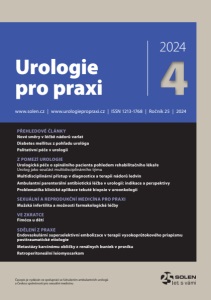 PŘEHLEDOVÉ ČLÁNKY Nové směry v léčbě nádorů varlat Diabetes mellitus z pohľadu urológa Palitativní péče v urologii Z POMEZÍ UROLOGIE Urologická péče o spinálního pacienta pohledem rehabilitačního lékaře Urolog jako součást multidisciplinárního týmu Multidisciplinární přístup v diagnostice a terapii nádorů ledvin Ambulantní parenterální antibiotická léčba v urologii: indikace a perspektivy Problematika klinické aplikace tekuté biopsie v uroonkologii SEXUÁLNÍ A REPRODUKČNÍ MEDICÍNA PRO PRAXI Mužská infertilita a možnosti farmakologické léčby VE ZKRATCE Fimóza u dětí SDĚLENÍ Z PRAXE Endovaskulární superselektivní embolizace v terapii vysokoprůtokového priapismu posttraumatické etiologie Metastázy karcinómu obličky z renálnych buniek v prsníku Retroperitoneální leiomyosarkom www.solen.cz | www.urologiepropraxi.cz | ISSN 1213-1768 | Ročník 25 | 2024 Urologie pro praxi 2024 Časopis je vydáván ve spolupráci se Sdružením ambulantních urologů a Českou společností pro sexuální medicínu